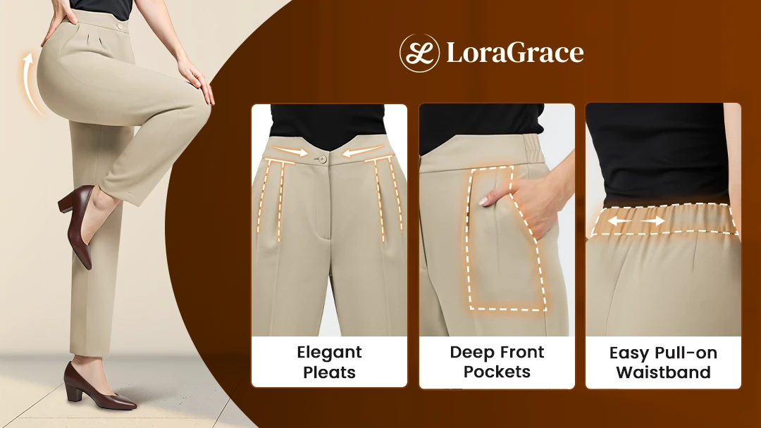 LoraGrace pants are crafted with seniors’ comfort in mind - blending quality fabric, care, and elegance to give mature women the peace and beauty they deserve