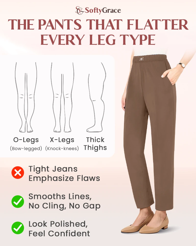 At 62, my weight fluctuates, and these pants adapt perfectly. No pinching, no rolling waist, just smooth and flattering. The leg cut makes me look taller!